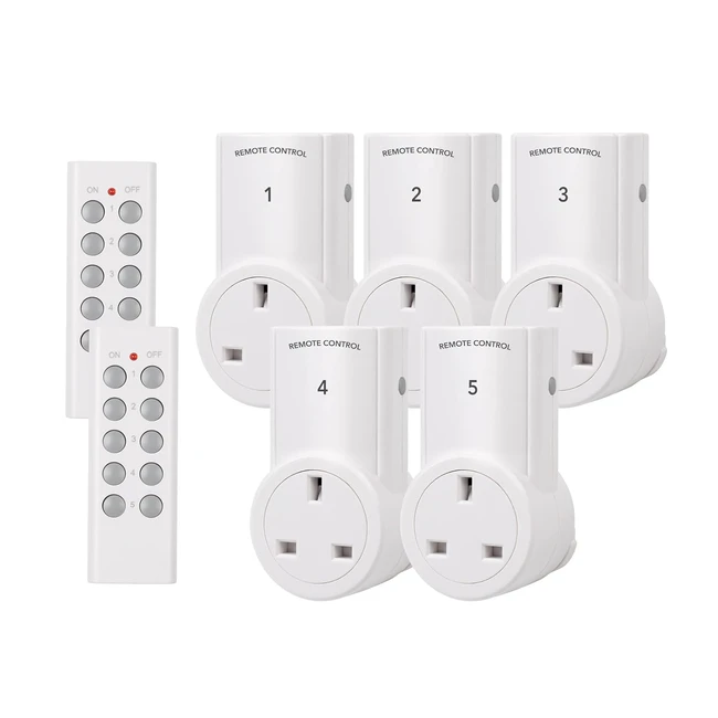 HBN Remote Control Plug Socket - 5 Pack Sockets and 2 Remotes - 30m Range - 13A/3120W