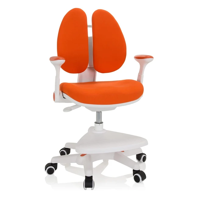 HJH Office 736419 Kinder Schreibtischstuhl Kid Wing Stoff Kinder Schreibtischstuhl mit Fußstütze klappbare Armlehnen orange/weiß