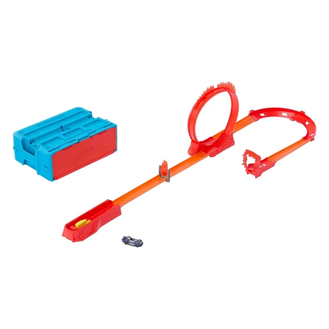 Hot Wheels Track Set - Firethemed - 1 Car - 16 Trackbuilding Components - Stackable Toy Storage Box