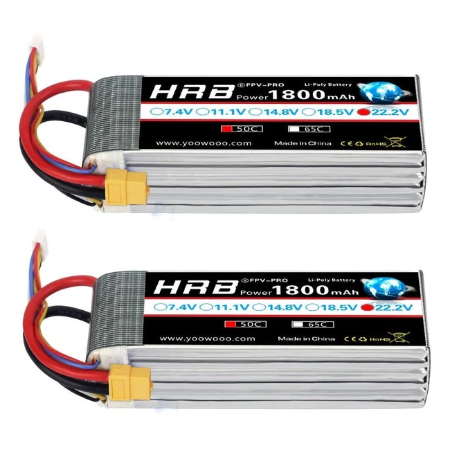 -15%¡Obtén 2pc HRB 1800mAh 22.2V 6S 50C Batería LiPo RC recargable! Adaptador XT60 a Deans T. Alta calidad, alta velocidad de rafaga 50C, recarga rápida y larga vida útil. ¡Garantía de batería de seis meses y reembolso completo o reemplazo incondicional dentro de los 30 días posteriores a la recepción!