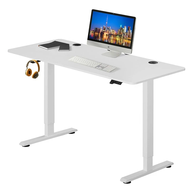 Juskys höhenverstellbarer Schreibtisch 140 x 60 cm elektrisch voll verstellbar Bürotisch Sitz Stehtisch Stauraum Memory-Funktion Weiß