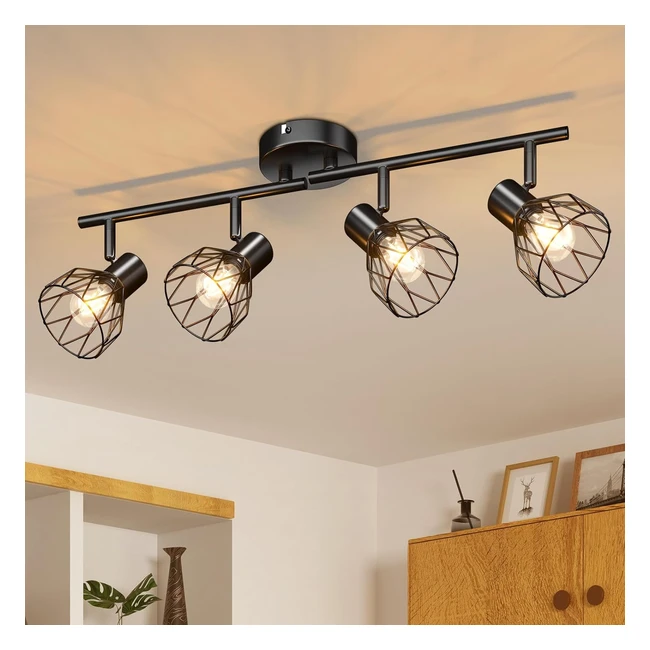 -20%Upgrade your home with this high-quality industrial style ceiling spotlight. Made of stainless metal, this rotatable black wire cage light fitting is sturdy and durable. With 4 spot heads that can be flexibly adjusted, this light provides directional lighting in any space. Compatible with different E14 bulbs, this ceiling light is versatile and easy to install. Illuminate your home with this stylish and functional spotlight today!
