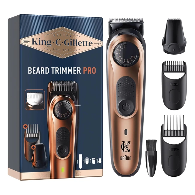 -15%Get the ultimate precision with King C Gillette Beard Trimmer Pro. With 40 length settings and lifetime sharp blades, this trimmer offers 80 minutes of trimming on a single charge. Easy to clean under water, fully washable. Includes 1 trimmer, 2 combs, and 1 brush for styling.