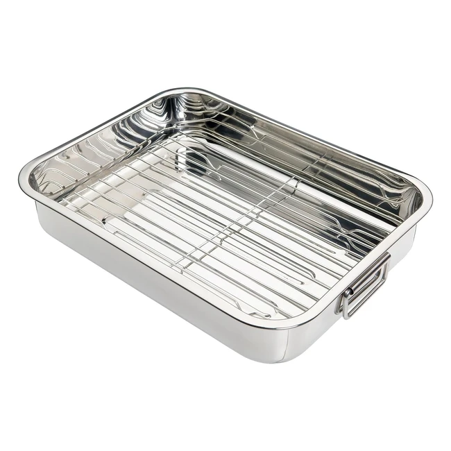 KitchenCraft Roasting Tin with Rack - Stainless Steel - Medium 37x28cm - Juicy & Tender Roasts