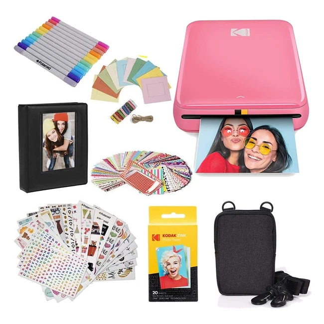 Kodak Step Instant Photo Printer with Bluetooth/NFC, Zink Technology, iOS/Android App, Pink - Gift Bundle