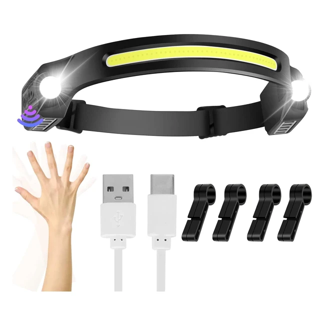 -5%Lampe frontale améliorée rechargeable équipée de 2 projecteurs LED XPE et d'un projecteur LED COB. Offre un champ de vision très large et un mode capteur de mouvement. 5 modes d'éclairage et design léger et confortable. Étanche IPX4, idéale pour camping, course, pêche, escalade, etc.
