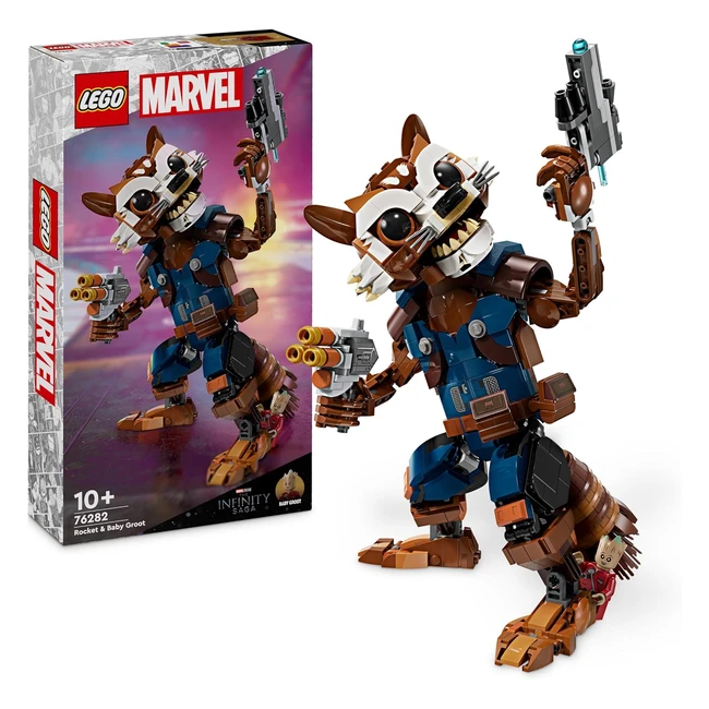LEGO Marvel Rocket y Bebé Groot Juego de Construcción - Figura de Acción Articulada - Regalo para Niños y Niñas de 10+ - 76282