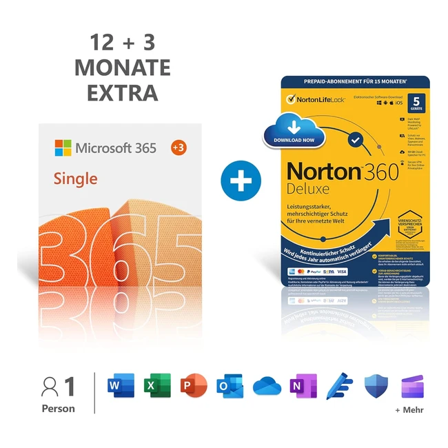 Microsoft 365 Single - 123 Monate - 1 Nutzer - PCS/Macs - Mobile Geräte - Aktivierungscode per Email - Norton 360 Deluxe