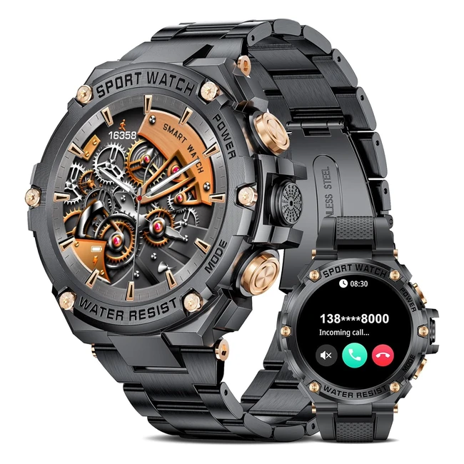 -20%Batterie Extralarge, Norme Militaire, Appels Bluetooth, Notifications de Messages, Modes Sportifs Multifonctionnels, Suivi de Santé, Écran HD 1.5'', Étanche 5ATM