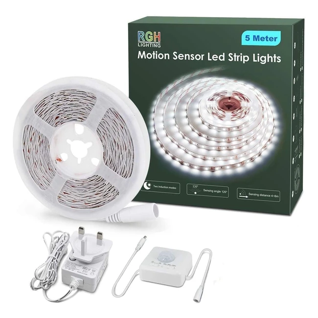 Motion Sensor LED Strip Lights 5m 6000K White 2 Activated Modes