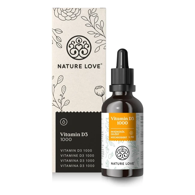 Nature Love Vitamin D3 1000 50 ml flüssig Laborgetestet 1000 IE pro Tropfen rein sehr hohe Stabilität hohe Bioverfügbarkeit hohe Dosierung
