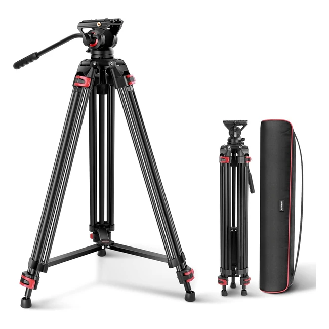Neewer 74 Pro Video Trípode con Cabeza Fluida - Trípode de Aluminio Resistente - Pan 360 - Placa de Liberación Rápida - 8kg