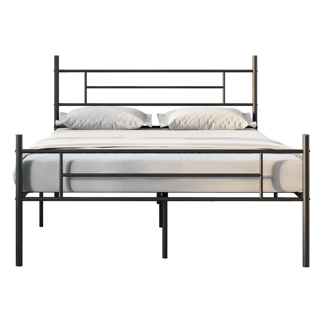 -21%¡Aprovecha esta oferta! Somier metálico Novilla de alta calidad con capacidad de carga de hasta 135 kg. Incluye marco de listones, cabecero, pie de cama y 9 pies estables. Perfecto para dormitorios o habitaciones de invitados.
