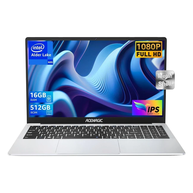 Ordenador Portátil 15.6" 16GB DDR4 512GB SSD Intel N95 34GHz Expansión 2TB 1920x1080 Diseño Metal Ligero