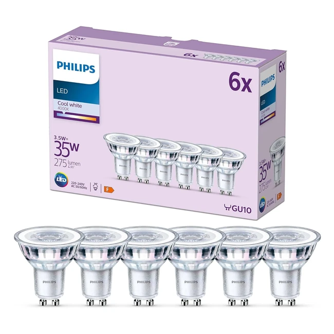 Pack 6 ampoules LED Philips GU10 35W - Blanc froid - Non dimmable