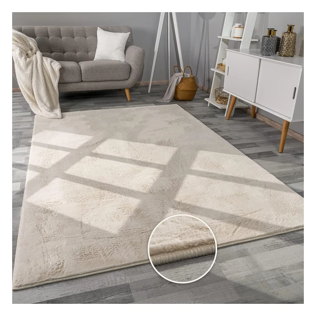 Paco Home Hochflor Teppich Wohnzimmer Flauschig Fellteppich Kunstfell Plüsch Shaggy Weich Fellimitat 120x170 cm Creme