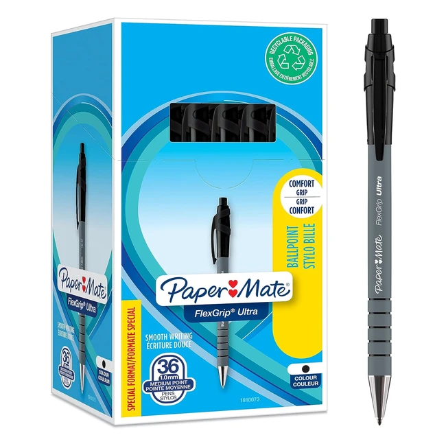 Paper Mate FlexGrip Ultra Retractable Ballpoint Pens - Medium Point 1.0mm - Black Ink - 36 Count