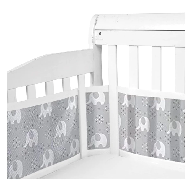 Protector de Cuna Bebé Chichoneras Plegable 4 Lados - Malla Transpirable 3D Gris Elefante