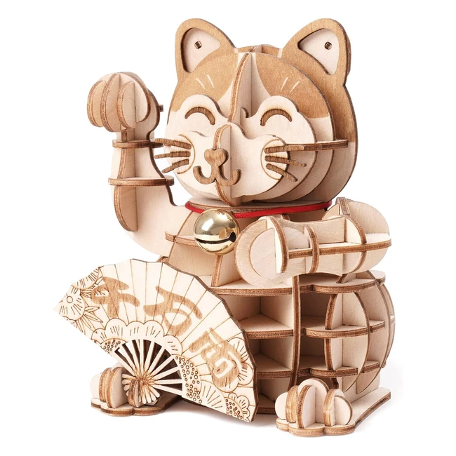 Puzzle 3D en bois pour adulte et enfants - Chat Chanceux - Kit de modèles de bricolage - Niveau de difficulté : facile
