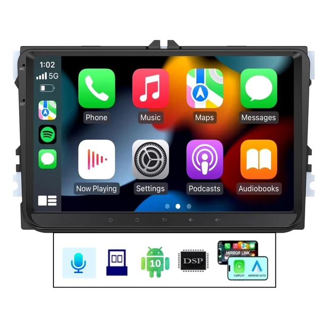 Radio Coche Eonon VW Golf Polo T5 Passat Jetta Skoda 2GB32GB CarPlay/Android Auto 9 Pantalla Táctil Bluetooth GPSAMFM DSP4 UI Q53SE