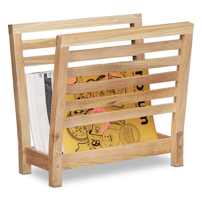 Revistero de madera de nogal Relaxdays - Organizador de revistas y folletos - Diseño moderno