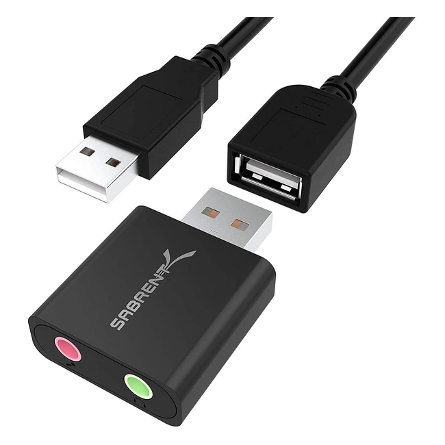 Sabrent USB to 3.5mm Double Jack Audio Adapter - Improve Sound Quality and Compatibility - Gaming Headset TRRS - DAC USB Extension Cable Included
