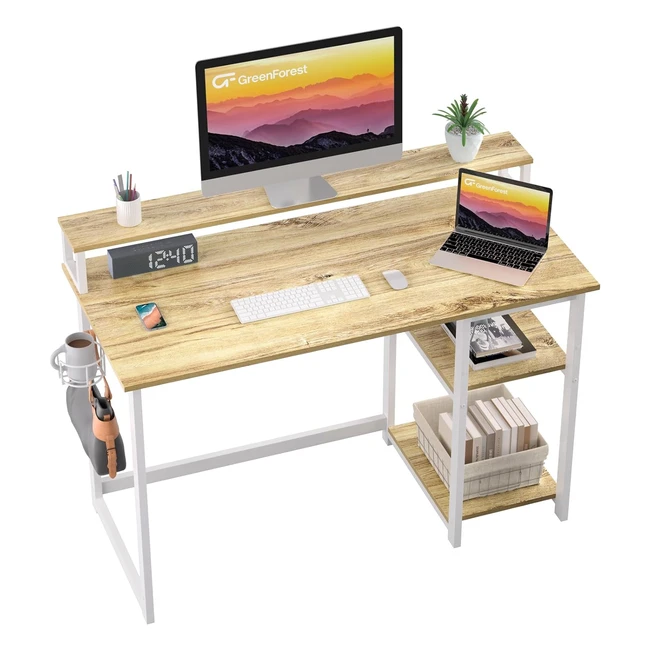 Scrivania per computer GreenForest con supporto monitor, scaffali reversibili 100x50 cm - Home Office Desk