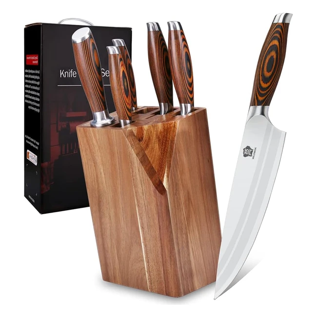 Set Coltelli Chef Wildmok 7pc Tedesco Pakkawood - Affilatura Acciaio - Blocco Coltello