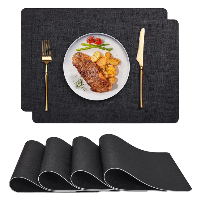 Set de table Myir Jun double face en cuir lot de 4 noir