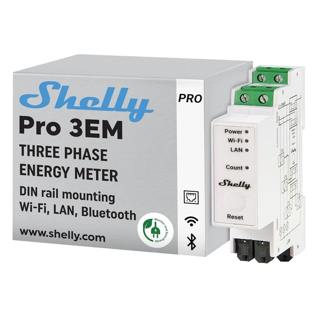 Shelly Pro 3EM è un contatore di energia elettrica trifase installabile su guida DIN con connettività WiFi, Bluetooth e LAN. Misura l'energia attiva con precisione dell'1%. Monitora il consumo di elettrodomestici, circuiti elettrici e apparecchiature per ufficio separatamente. Misura tre circuiti separati e la corrente in due direzioni. Visualizza la qualità del sistema elettrico in termini di potenza attiva, potenza reattiva, tensione e fattore di potenza. Monitora e controlla i pannelli solari. Shelly Pro EM400A fornisce informazioni in tempo reale sull'efficienza dell'impianto solare ed eolico, nonché dati registrati sulla quantità di elettricità prodotta e consumata ogni minuto negli ultimi 60 giorni. Servizio clienti Shelly. Shelly è un marchio IoT che fornisce soluzioni per l'automazione di case private, edifici e aziende. L'app Shelly Smart Control vi aiuterà a controllare i vostri dispositivi Shelly da remoto e vi invierà notifiche per tutti gli eventi automatizzati della vostr