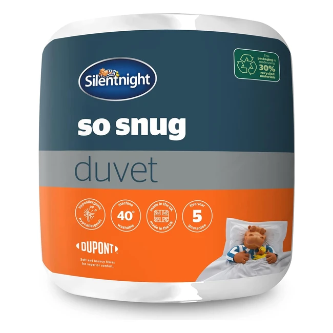 -21%Stay warm and cosy on chilly nights with this Silentnight So Snug King Bed Duvet Quilt. Filled with soft and bouncy Dupont fibres for superior comfort, this 15 tog duvet provides ultimate warmth for cold winter nights. Hypoallergenic and machine washable, this duvet is perfect for those with allergies. Keep your duvet fresh and clean with ease.