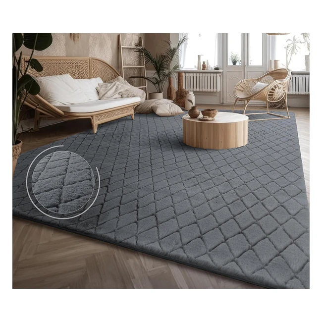 Tapis Salon Chambre Adulte Poil Long Shaggy Motif Scandinave Géométrique Losange Moderne 200x280cm Anthracite