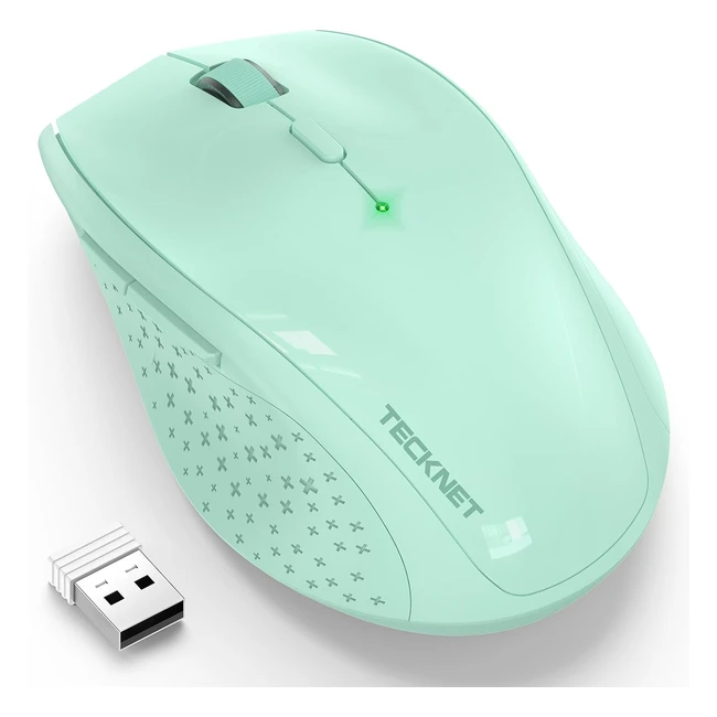 TeckNet 2.4G Classic Wireless Mouse 3200 DPI Optical Computer Mouse with 6 Adjustable Levels - 30 Months Long Battery Life - Cordless USB Mouse - Green