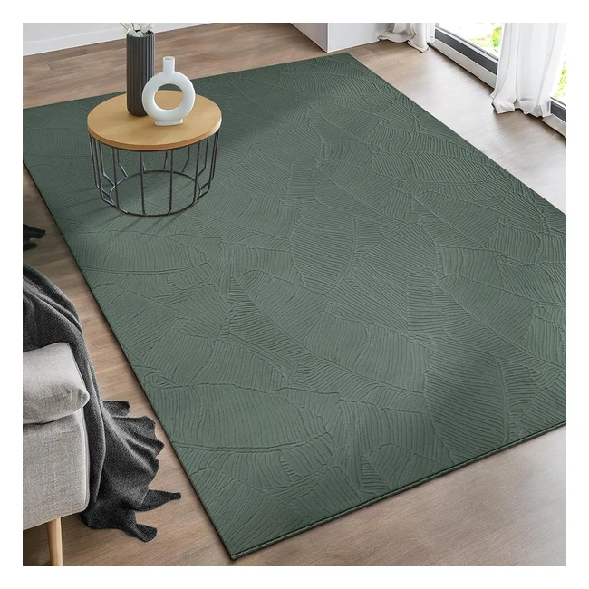 Teppich Rio Modern und Weich Teppich für Wohnzimmer Schlafzimmer mit rutschfester Rückseite und 3D-Look Flauschige Oberfläche leicht zu reinigen und robust Grün 60 x 100 cm