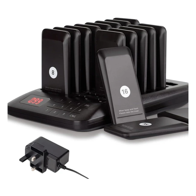 -10%Improve work efficiency with 3 notification modes and 656ft transmission distance. Paging multiple pagers simultaneously with customizable settings. Water and oil proof touch pad for various environments. British standard plug included.