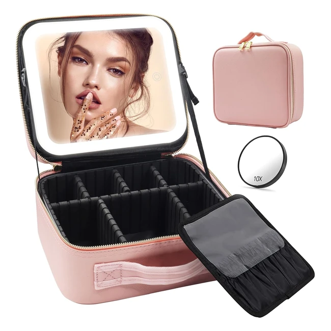 Trousse de Maquillage de Voyage avec Miroir Lumineux - Cosmétique Cloisonnable - 3 Modes