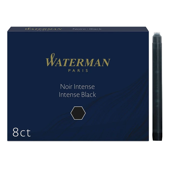 Waterman Fountain Pen Refill Ink Cartridges - Intense Black - 8 Count