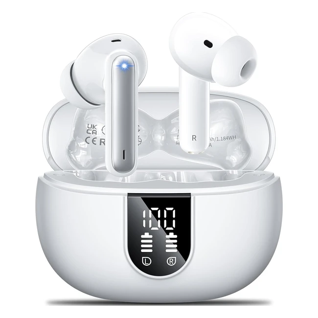 Wireless Earbuds Bluetooth 53 In-Ear 4 Mic Noise Cancelling Headphones Mini LED Display Hifi Stereo 42H Playtime IP6 Waterproof White