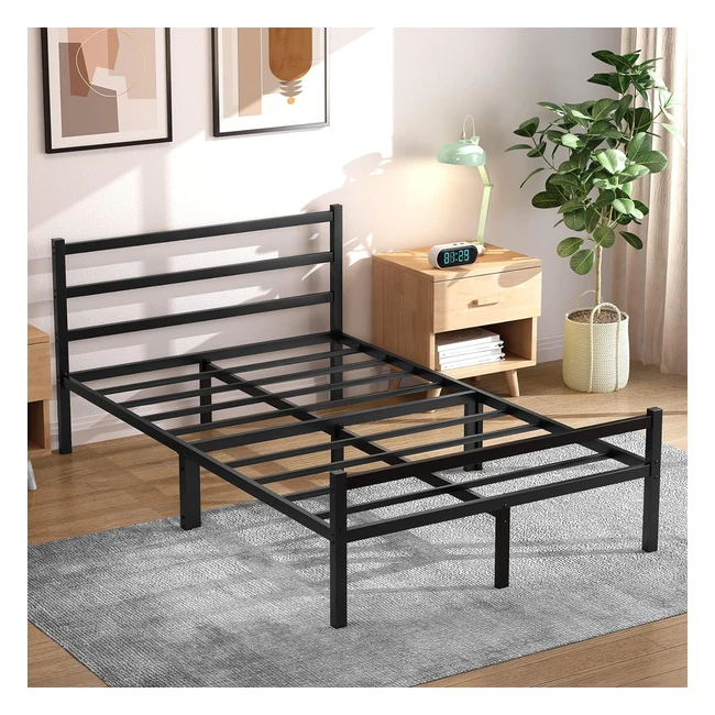 Yornoli Double Bed Frame with Headboard 4ft6 - Black Metal, Heavy Duty, Non-slip